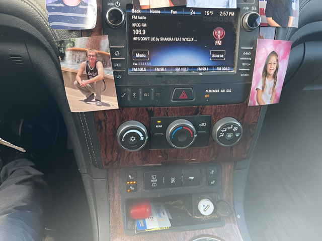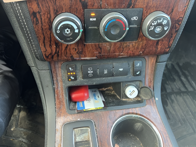 - Console, front center with 2 cup holders, covered storage bin and sliding armrest with storage